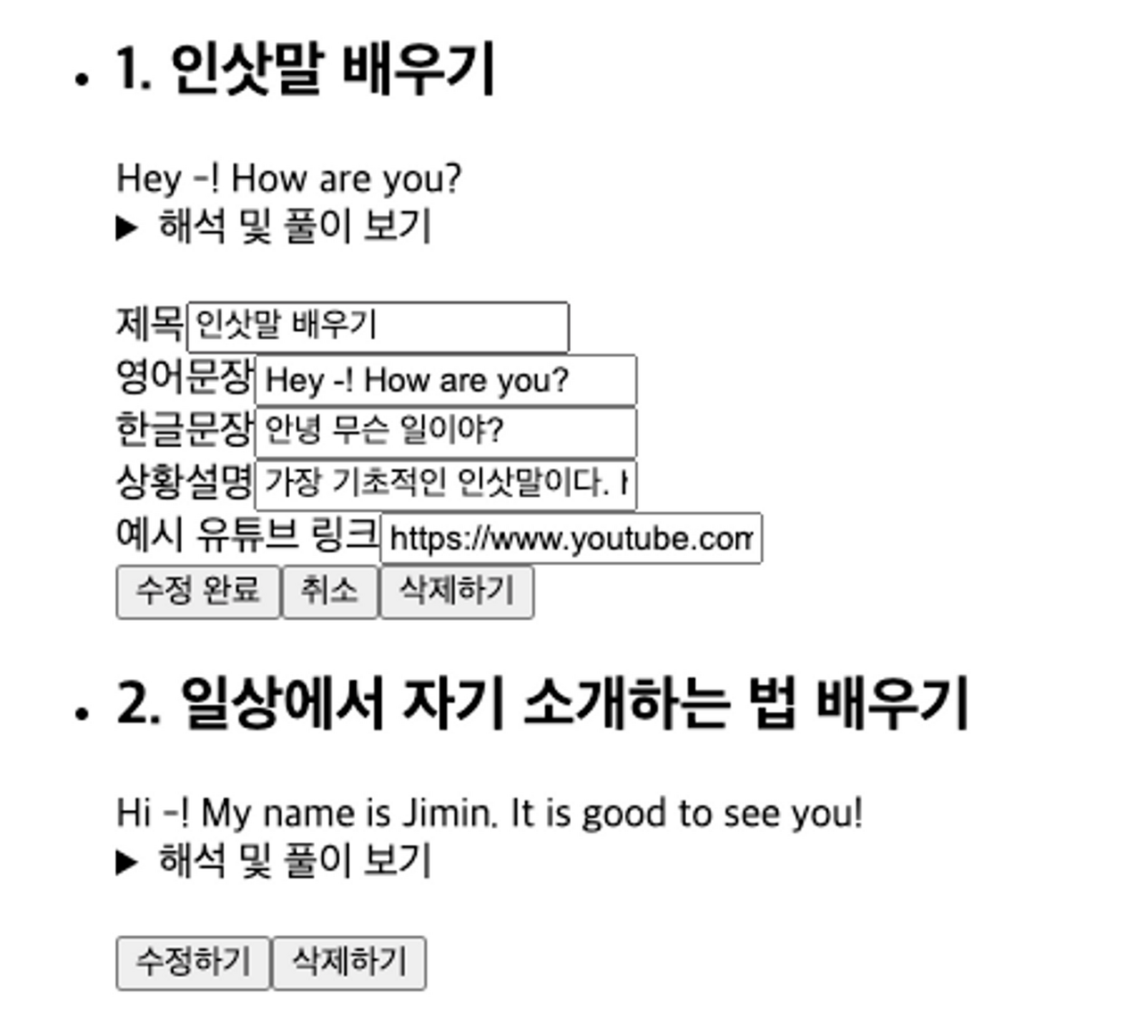 1. 수정하기 전 화면